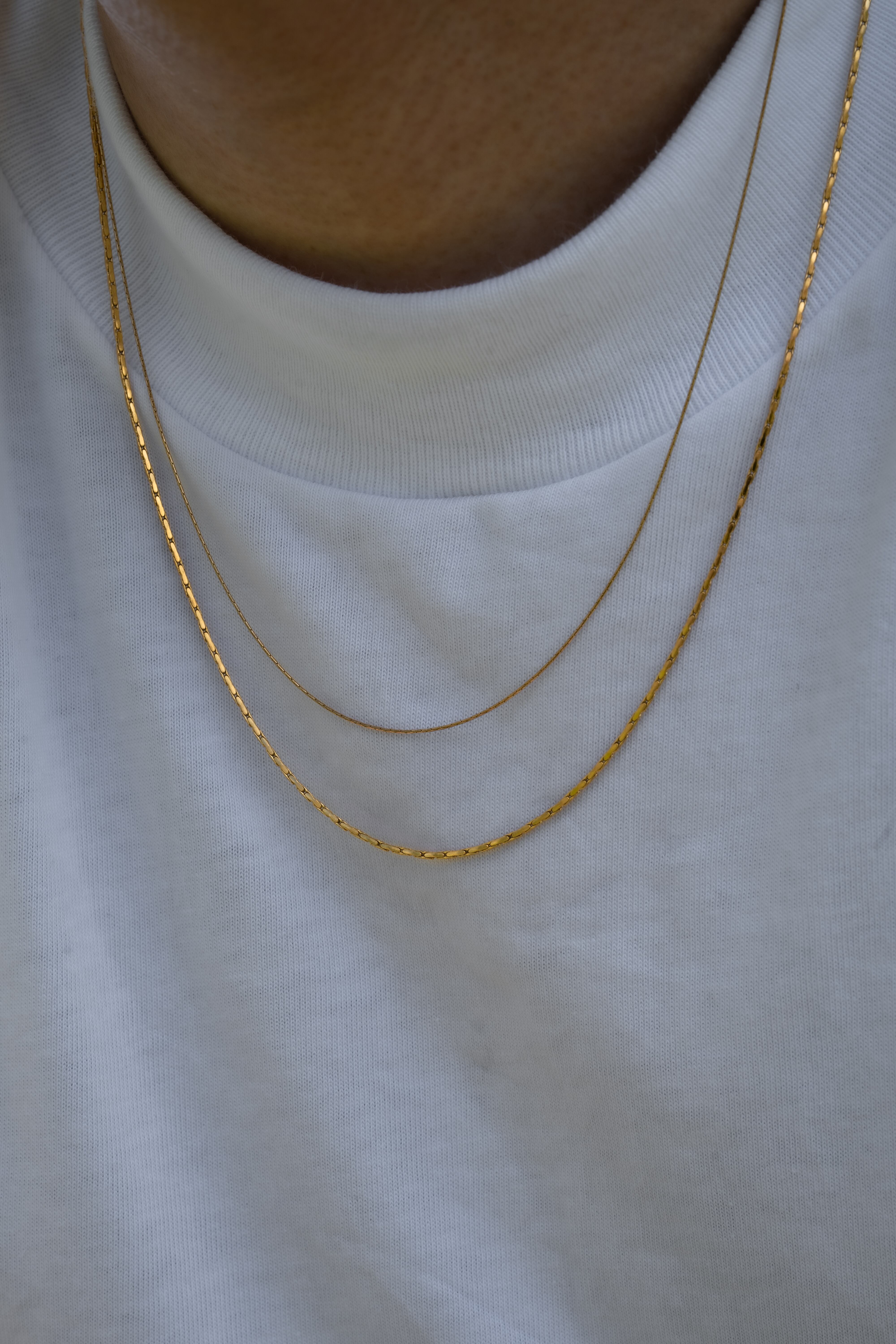 表面変化のある幅1.2mmのスキンチェーンネックレス。