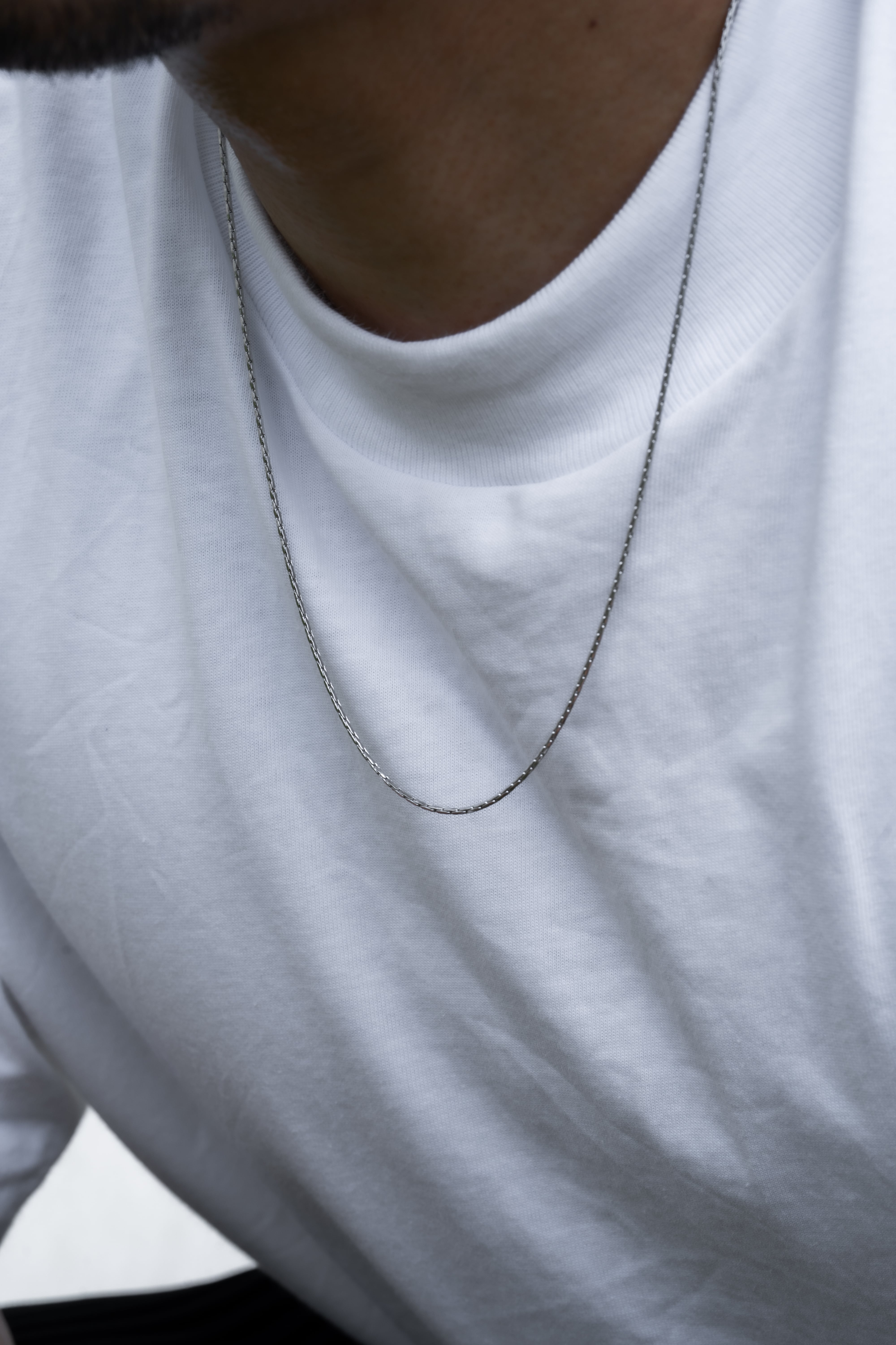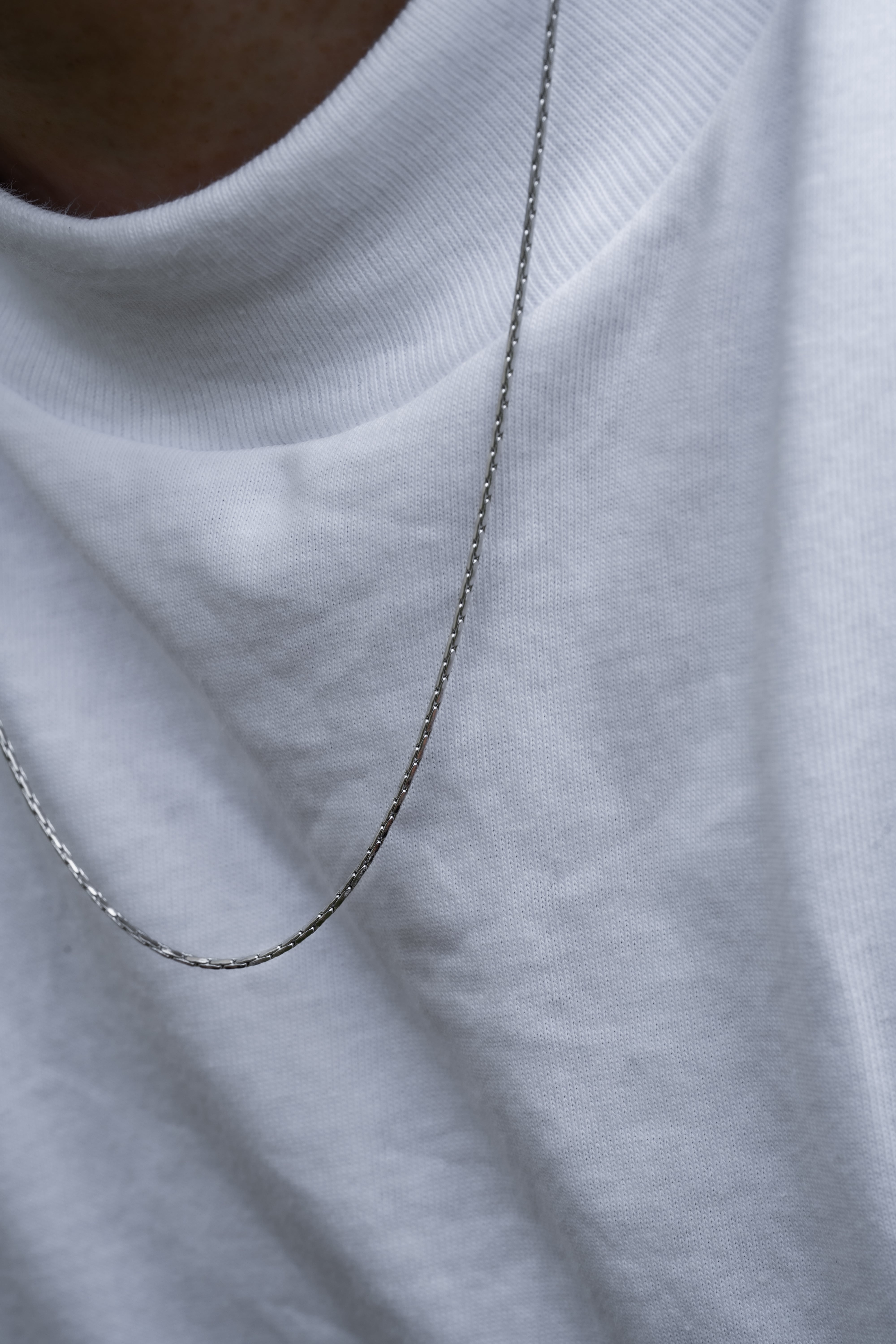 表面変化のある幅1.2mmのスキンチェーンネックレス。